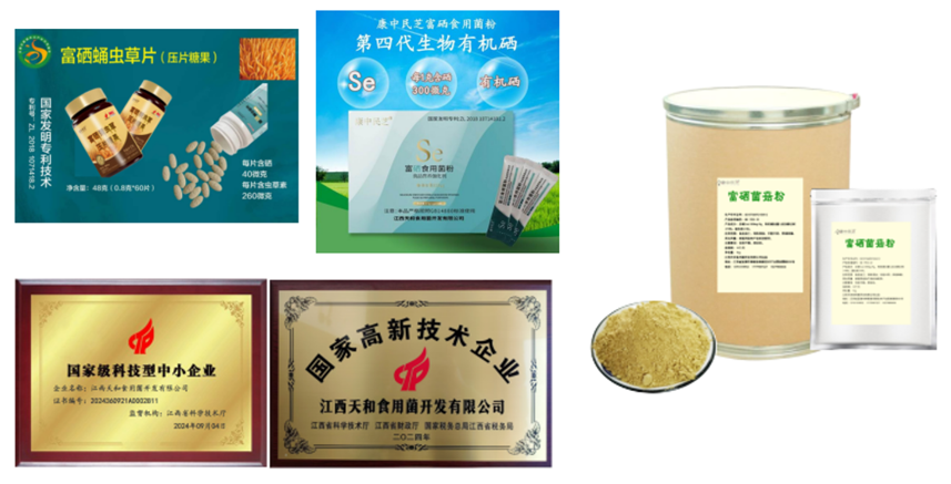 江西天和食用菌开发有限公司经十多年刻苦攻关,以灵芝、蛹虫草、猴头菇为载体,运用现代生物工程深层发酵技术,成功地将无机硒转化为有机硒,实现了“一颠覆四打破”的重大创新成果。其中就打破了没有富硒土壤就不能发展富硒养殖业的瓶颈,使富硒产业的发展不再受地域限制,无论在何地,都可以发展富硒养殖业。 灵芝已列入饲料原料目录,可用富硒灵芝粉添加到饲料里喂养猪牛羊、鸡鸭鹅、水产品,有十分重要的意义。将富硒菌菇粉与其他饲料混合应用于养殖业,堪称畜牧业的一场革命。