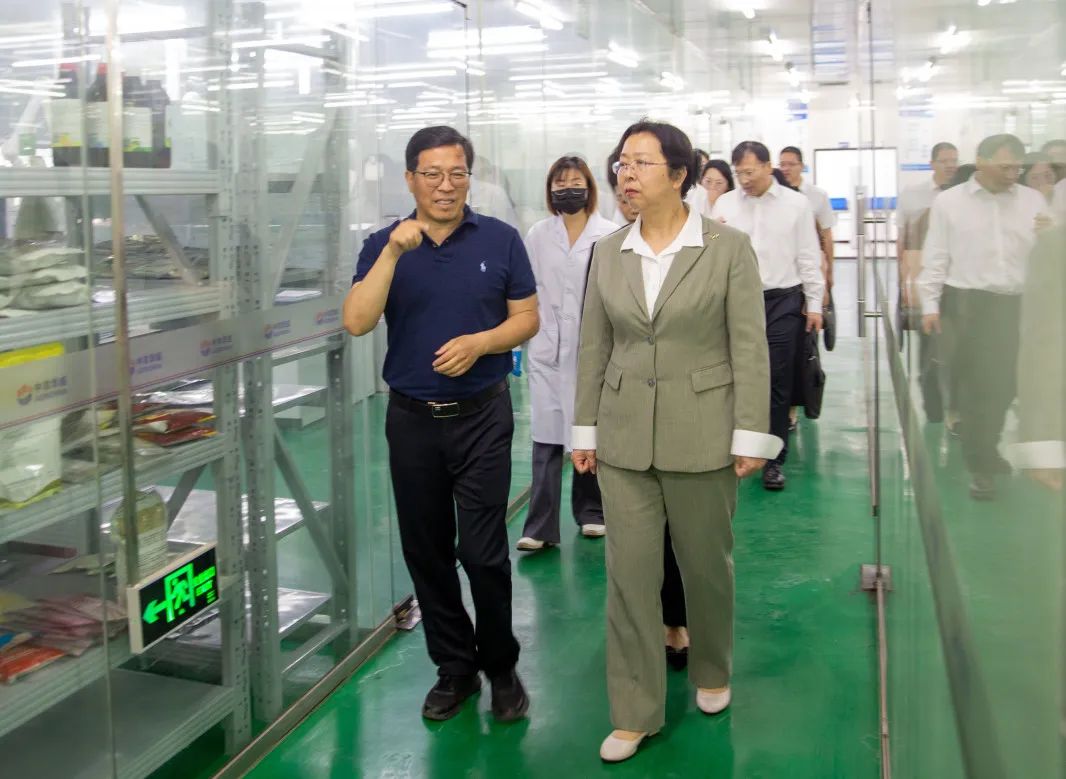 肖红娟副市长一行在游锡火董事长的陪同下,重点考察了公司科技创新成果展示区、制造业创新中心和高标准实验室,详细了解企业在人兽共患病防控、新型中兽药研发、农业微生物技术等领域的创新突破。在研发大楼,肖红娟副市长仔细询问了公司研发投入、科研团队建设及核心技术攻关情况,对企业在创新研发方面取得的系列专利成果表示高度赞赏。