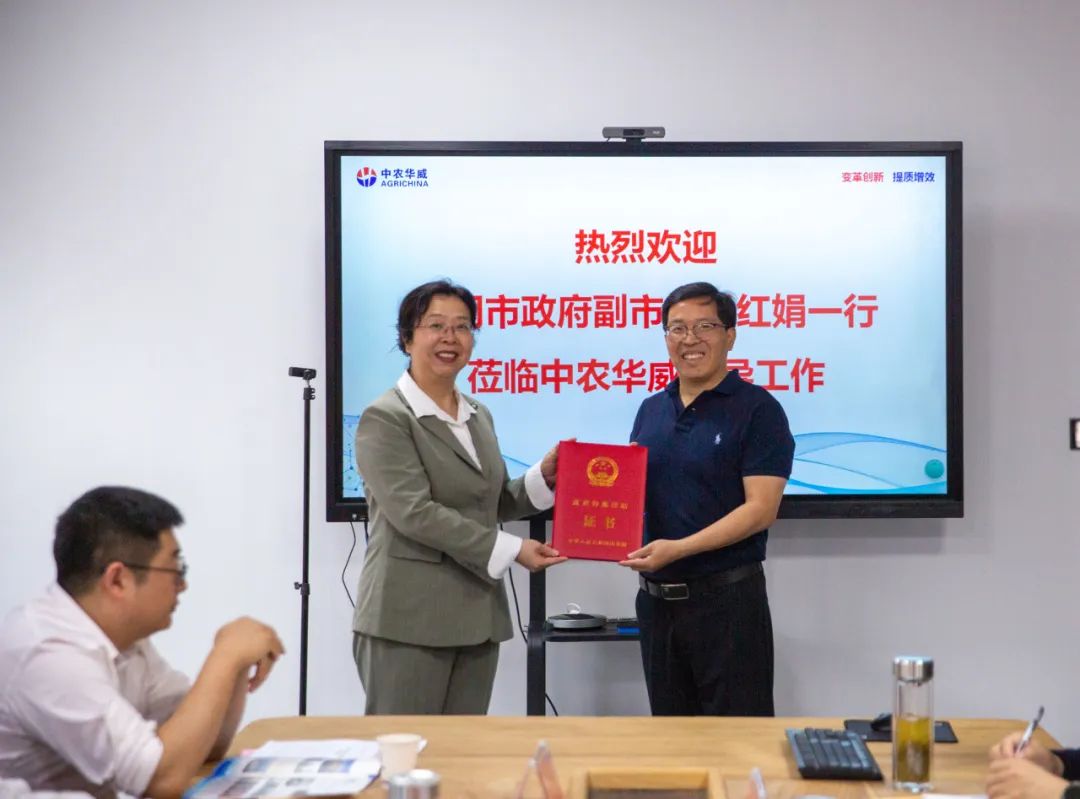 4月17日,黄冈市政府副市长肖红娟带领市政府办、市委组织部人才科、市人社局有关领导莅临中农华威,为公司董事长游锡火颁发国务院特殊津贴专家证书。市政府副秘书长李俊东陪同。