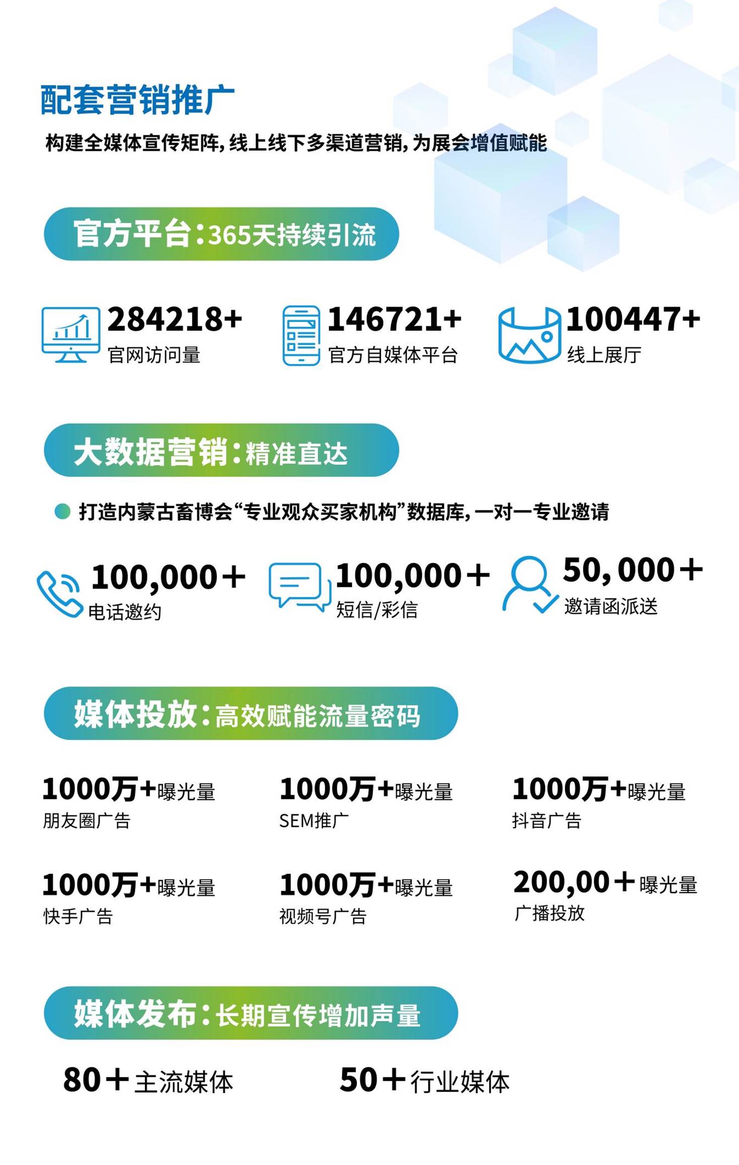 本次博览会汇聚了政策优势、行业资源与市场机遇,是内蒙古畜牧业发展成果的集中展示平台,更是深入了解行业趋势、拓展业务合作、共探发展新路径的绝佳契机。
